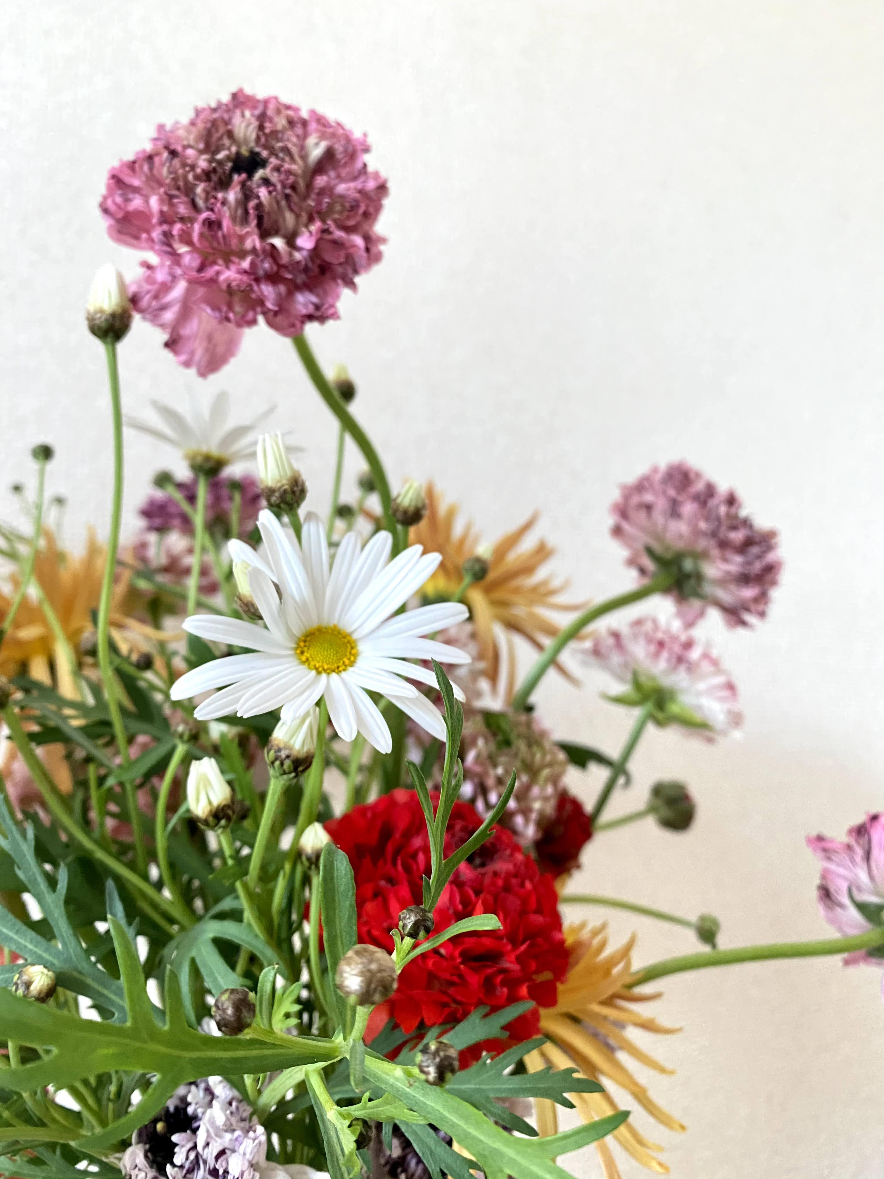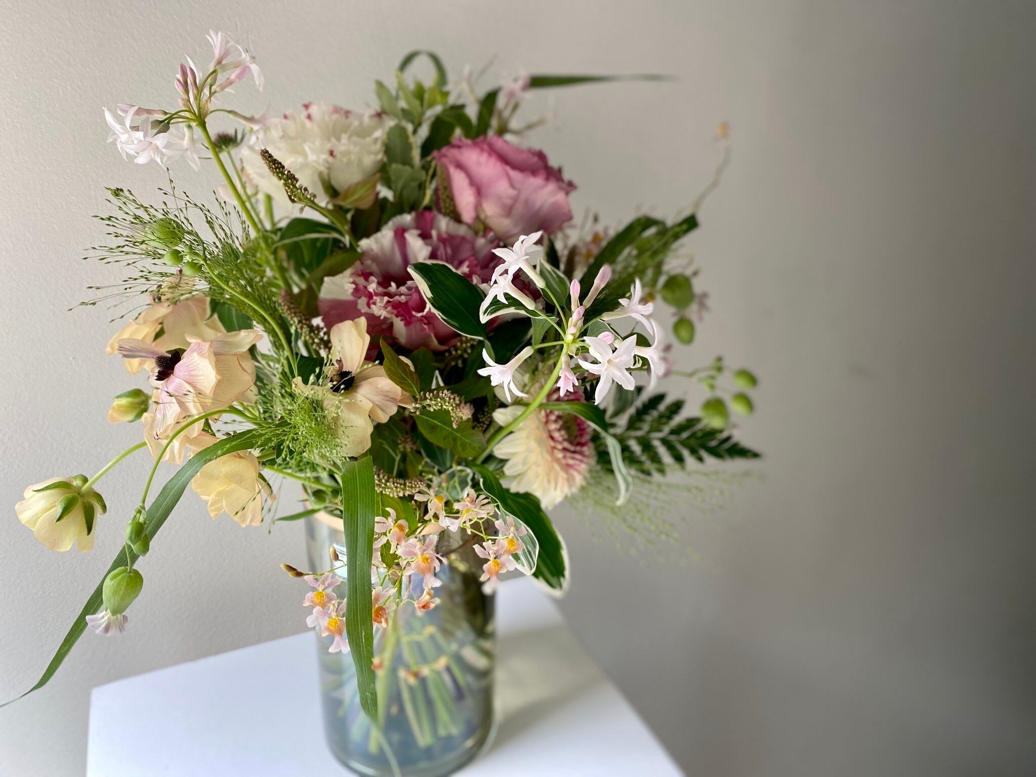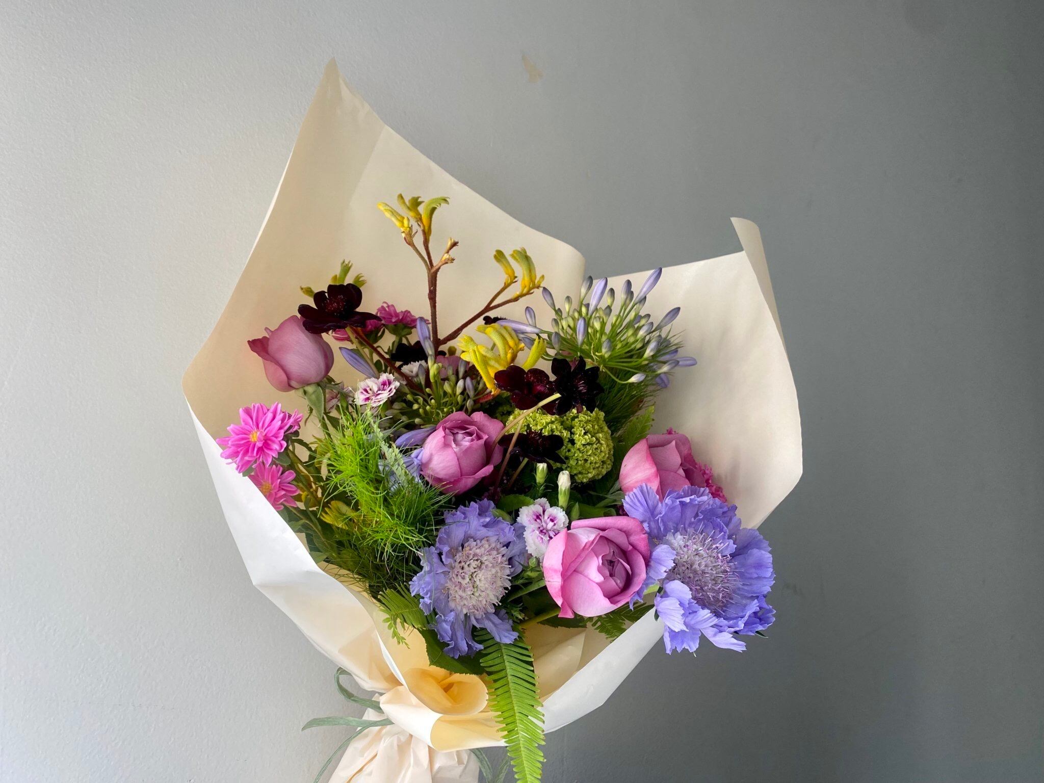 オーダーに合わせて市場に買い付けに行き、その時々で出会ったお花をセレクトしておりますので、写真のお花はイメージとなります!